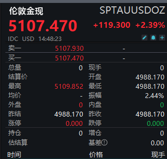 现货黄金突破5100美元